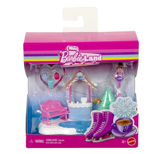 Enter the world of Barbie doll with Mini Barbie Land -- a place to imagine big and Dream in Mini! Built with tiny cuteness, Barbie's mini playsets are ready for imaginative play! The small-scale recreations of iconic Barbie scenes, like the Pet shop and Supermarket, have fun features unique to each playset! Each set comes with an adorably styled 1 1/2-inch Barbie doll that bends at the waist so she can sit or stand to enjoy big adventures in Mini Barbie Land. Fans ages 4 years and up will love playing out job-related storytelling, in mini scale!