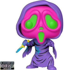 Entertainment Earth Exclusive! - Got a phone call? Beware… Ghost Face is on the hunt for his next victim. This legendary slasher screams with thrilling details and neon colors! Place him under a black light and watch him glow in action! Standing about 3 3/4-inches tall, this Scream Ghost Face Black Light Funko Pop! Vinyl Figure #1607 - Entertainment Earth Exclusive comes in window-box packaging. Carve out some space for a killer addition to your horror set and add this limited edition exclusive to your Funko Pop! collection, today!